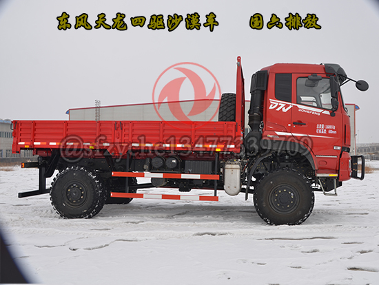 全新國(guó)六東風(fēng)四驅(qū)六驅(qū)沙豹沙漠車為特殊行業(yè)精心打造,適合全地形無(wú)路區(qū)域的全時(shí)4×4、6×6驅(qū)動(dòng)車型,選用康明斯9升國(guó)六發(fā)動(dòng)機(jī),動(dòng)力涵蓋340---400馬力,動(dòng)力強(qiáng)勁、性能可靠,采用7噸及10噸級(jí)雙級(jí)輪減前、后橋,離地間隙大、通過(guò)性好,前、中后橋配備輪間、軸間差速鎖裝置可適應(yīng)極惡劣道路狀況下的通過(guò)要求,先進(jìn)的遠(yuǎn)距離電控氣動(dòng)裝置可實(shí)現(xiàn)高、低檔及前橋鎖止功能的轉(zhuǎn)換,多管旋流式三級(jí)空濾進(jìn)氣系統(tǒng)可有效地阻止極細(xì)微的粉塵進(jìn)入發(fā)動(dòng)機(jī),外接式中央充放氣裝置可同時(shí)或單獨(dú)快速調(diào)節(jié)輪胎氣壓,越野和沙漠輪胎的互換可使車輛通過(guò)性適合各種地形地貌,選裝前后液壓絞盤等裝置能使車輛在各種環(huán)境下保持良好的狀態(tài)及自救互救功能,沙漠車使用工況:用于無(wú)路地域的貨物運(yùn)輸,適應(yīng)沙漠、浮土、戈壁、礫石、泥濘、山地、崎嶇、冰雪等路況。耐溫±45℃,可作為石油物探、地質(zhì)勘查、大地測(cè)量、文物考古、草原監(jiān)理、畜牧防疫、森林消防、邊境巡邏、沙漠旅游等行業(yè)用車,是改裝專業(yè)工程車如:地震儀器、爆破器材運(yùn)輸、沙漠冷藏、沙漠隨車起重運(yùn)輸、工程搶險(xiǎn)、林業(yè)吊運(yùn)、搶險(xiǎn)救災(zāi)等車輛及越野房車的理想底盤。
