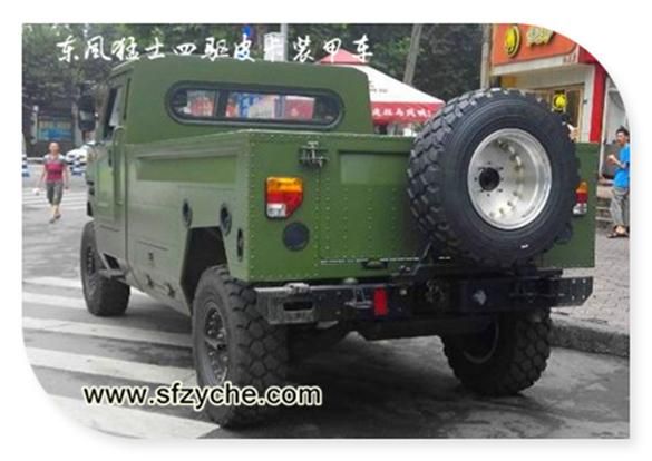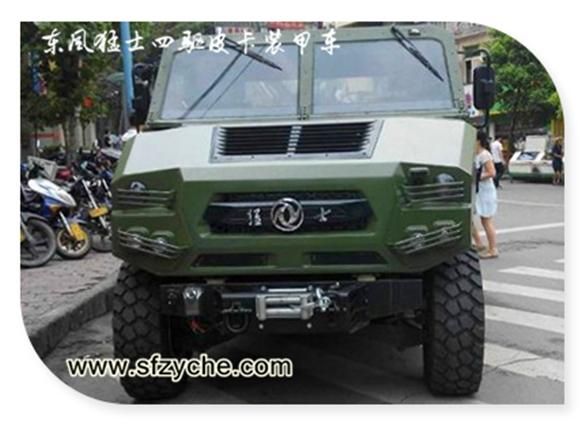 上圖是東風(fēng)第一代猛士裝甲車,2013年5月份,東風(fēng)猛士的重大改款出現(xiàn)在北京某防務(wù)展上,而在此之前,網(wǎng)絡(luò)上已經(jīng)流傳出了數(shù)十張來自不同車廠的近乎悍馬的裝甲車的諜照。其中南京依維柯、寶雞改裝廠的相似車型(均采用近乎悍馬的底盤)在2009年就開始進(jìn)行測試,東風(fēng)的裝甲版猛士可以被看做“根兒正苗兒紅”的嫡系產(chǎn)物。這款近乎全新研發(fā)的2代猛士,無論國產(chǎn)化率還是防護(hù)性能均得到了極大地提升。如果說東風(fēng)1代猛士(基型車)是模仿悍馬而來(猛士的動力、變速器、分動器均采用原裝備件),那么2代猛士(裝甲版)則是一款核心部件自主化的全新車型。