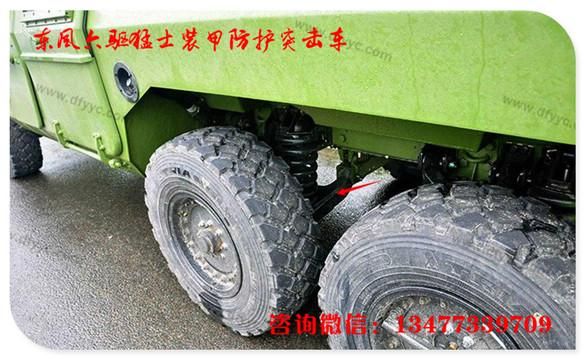 東風(fēng)4輪/6輪驅(qū)動版本的長軸2代猛士裝甲車,匹配了相同容量的正負(fù)油箱。因?yàn)樵黾恿?套驅(qū)動橋,部分燃油管路以及懸架進(jìn)行了必要的修改。另:從上圖可以看到長軸2代猛士裝甲車車身焊裝以及噴涂工藝較以往有明顯提高。