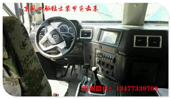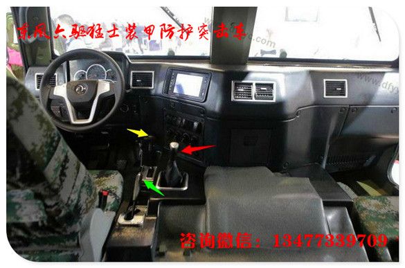 上圖是6輪驅(qū)動長軸2代猛士裝甲車駕駛艙特寫。較1代猛士裝甲車有24處改進(jìn)。諸如:粗握把3幅面方向盤可以減緩駕駛員操作時(shí)的疲勞程度(1代猛士的方向盤為細(xì)握把,駕駛時(shí)間超過2小時(shí)手掌酸痛)。全新的組合儀表,將發(fā)動機(jī)轉(zhuǎn)速、車速、發(fā)動機(jī)水溫、機(jī)油壓力、蓄電池電壓顯示的更加清晰。各個(gè)功能按鍵全部改為由上至下按壓式大尺寸開關(guān)。而輪胎壓力調(diào)節(jié)開關(guān)從儀表臺左下側(cè)轉(zhuǎn)移至右側(cè)(此處改進(jìn)有助于駕駛員快速操控)。
