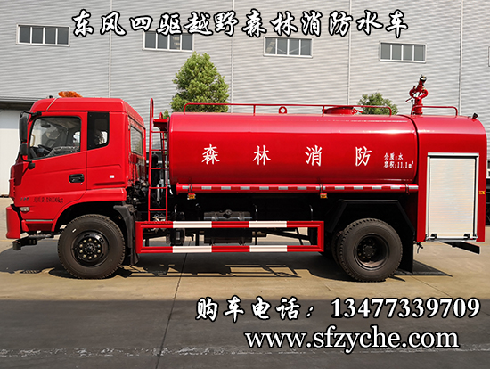 東風(fēng)四驅(qū)越野森林消防水罐車_東風(fēng)11.1噸四驅(qū)消防水車_國(guó)五四驅(qū)越野森林滅火水車_東風(fēng)4×4越野SCS5183GPSEQ型四驅(qū)綠化噴灑車簡(jiǎn)介:采用東風(fēng)EQ2180GD5DJ型越野汽車底盤(pán),東風(fēng)153寬體駕駛室(選裝D913新款駕駛室),4×4驅(qū)動(dòng),康明斯ISB190 50國(guó)五發(fā)動(dòng)機(jī),六檔變速箱,東風(fēng)商用車橋,前驅(qū)動(dòng)橋3.8噸,后橋10噸,10.00R20輪胎,軸距4500mm,電動(dòng)玻璃,方向助力,斷氣剎,ABS。罐體采用優(yōu)質(zhì)碳鋼Q235板材,板材厚度4mm,罐體容積11.1立方,安裝夾心取力器,后置泵箱,消防栓接口左右各一個(gè),消防炮采用PS30-50D消防水炮,流量40L/S/1.0MPa 水射程:≥50m,消防泵采用常壓消防泵型號(hào):CB10/40車用消防泵,流量:40L/s,壓力:1.0MPa,駕駛室頂部安裝長(zhǎng)條警燈帶喊話器,全車顏色橘紅,兩側(cè)噴涂白色森林消防字樣。