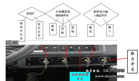 2、收鋼絲繩:拉上駐車制動受控閥,并用木塊,石頭掩住車輪,將鼓筒離合器操縱機構(gòu)手柄放在“合”的位置,變速器處于空檔 ,起動發(fā)動機,踏下離合器踏板,接通遠(yuǎn)距離控制開關(guān)(此時蜂鳴器叫),按下取力器自鎖開關(guān),同時轉(zhuǎn)動手柄至“反”的位置,此時駕駛室頂蓋儀表指示燈亮“箭頭逆時針旋轉(zhuǎn)”圖案,表明取力器已掛上,此時慢慢松開離合器,平穩(wěn)加油,即可收卷鋼絲繩,開始牽引。牽引完后,踩下離合器踏板,按下取力器自鎖開關(guān),同時轉(zhuǎn)動手柄至“0”的位置,將鼓筒離合器操縱手柄放在“離”的位置,關(guān)閉遠(yuǎn)距離控制開關(guān)。