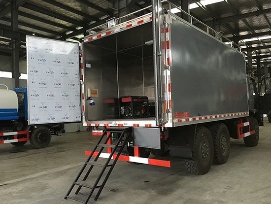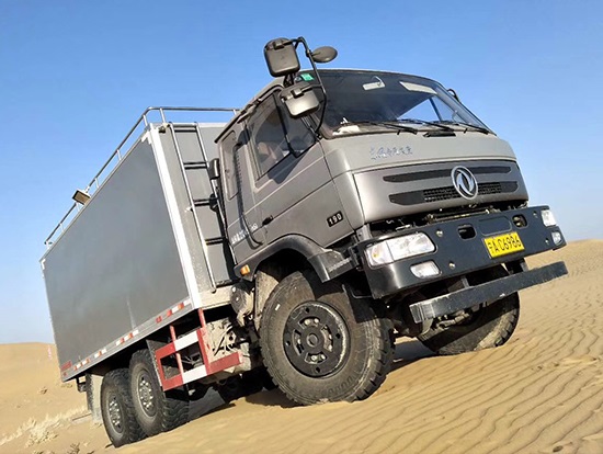 東風(fēng)六驅(qū)國五越野廂式車簡介:采用東風(fēng)原廠六驅(qū)國五越野底盤EQ2220GD5DJ型,駕駛室為老款153,新款D913兩種可以選擇,康機(jī)190馬力帶增壓,機(jī)械式六檔變速箱,3.5噸軍檢分動箱,4.5噸雙聯(lián)式軍用驅(qū)動前橋,5噸軍用貫通式雙后橋,方向助力,離合助力,前橋介入高低檔均采用電控式,315/80R22.5越野輪胎,軸距3500+1250mm,ABS,隨車工具及備胎各一套。