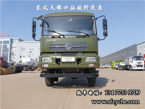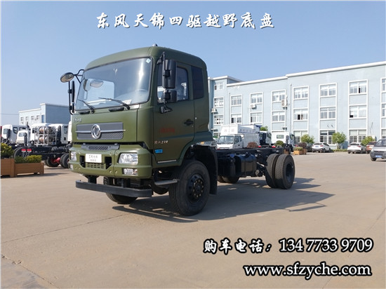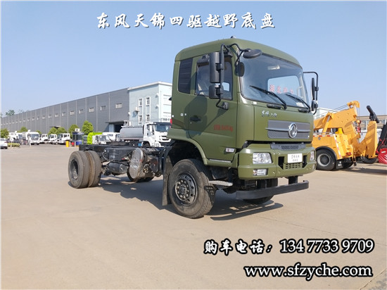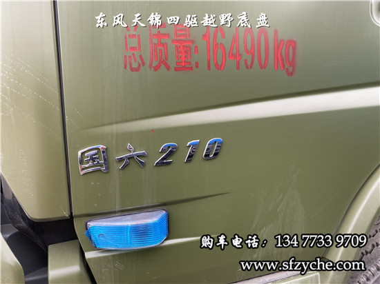 國六排放天錦(4×4)越野底盤,采用DFV2163GP6DJ型國六排放東風天錦四驅(qū)越野底盤,東風天錦D530一排半駕駛室,4×4驅(qū)動,康明斯B6.2NS6B210國六發(fā)動機210馬力,最大扭矩:850N.m/1100-1700rpm,排量6.2L、韶齒手動六檔變速箱,東風德納車橋,前驅(qū)動橋4.5噸,后橋10噸,10.00R20輪胎,軸距4500mm/4700mm,大梁280mm,電動玻璃,方向助力,斷氣剎,ABS,大燈自動調(diào)節(jié),自動調(diào)整臂,選裝原廠空調(diào)。