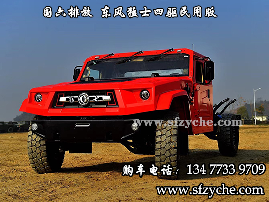 東風(fēng)猛士民用版EQ2063EYY6J型長頭單排四驅(qū)越野底盤是東風(fēng)越野車公司針對民用方面的首款軍轉(zhuǎn)民產(chǎn)品代表,其繼承東風(fēng)軍用猛士的正規(guī)血統(tǒng),品質(zhì)優(yōu)異,技術(shù)過硬。東風(fēng)猛士民用版EQ2063EYY6J采用東風(fēng)猛士M50型四驅(qū)底盤改造而成,采用東風(fēng)康明斯D4.0NS6B195型國六柴油發(fā)動機,195馬力 ,排量4L帶增壓,最大扭矩600/1100-2200(N.m/r/min);猛士5擋軍用手動變速箱;分動箱為四輪全時驅(qū)動帶高低擋;軸距3800mm;整備質(zhì)量3540kg;核定載質(zhì)量2460kg;輪胎采用305/80R18MPT全鋼子午線輪胎,帶自動中央充放氣系統(tǒng);整車總質(zhì)量6000kg,國六B排放全國可上黃牌,整車尺寸:5320*2310*1950mm;最小離地間隙388mm,最大垂直越障400mm,通過性強,適應(yīng)高海拔極寒極熱地區(qū),全國暢行無阻,最高車速可達(dá)120km/h。